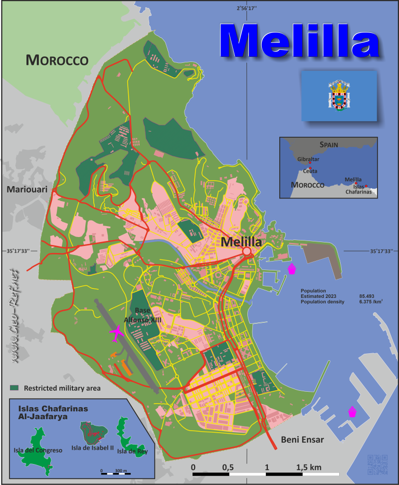 Melilla ist eine faszinierende autonome Stadt in Nordafrika, die Teil Spaniens ist. Diese einzigartige Lage macht sie zu einem interessanten Ziel für Reisende und Geschichtsinteressierte. Der Karte Melilla steht zum Ausdrucken oder kostenlosen Download zur Verfügung, sodass du dir die Stadt besser vorstellen kannst.