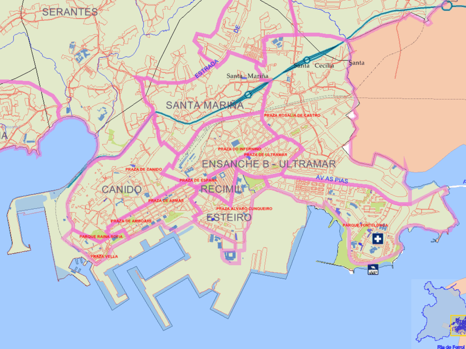 Die Stadtteilkarte Ferrol hilft Besuchern, diese faszinierenden Orte und viele weitere Anziehungspunkte leicht zu finden.