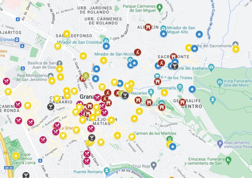 Mapa turístico de Granada te será de gran utilidad para no perderte los lugares más destacados como: